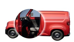 Dòng xe mang phong cách của các mẫu kei truck Nhật Bản với thân xe vuông vức, tối ưu không gian chứa hàng. Cửa hông mở rộng giúp bốc xếp nhanh chóng, đặc biệt phù hợp giao nhận hàng trong ngày. Phần đầu xe có tạo hình hiện đại với logo VinFast, đèn LED định vị và hệ thống chiếu sáng halogen tiêu chuẩn.
